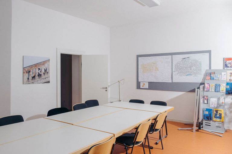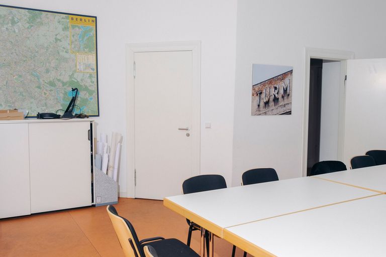 Anbieter*inFörder- und Sanierungsgebiet Turmstraße, Prozesssteuerung KoSP GmbHBezirkMitteStraße und HausnummerKrefelder Straße 1 APostleitzahl:10555Websitehttps://www.turmstrasse.deBezeichnung des RaumesRaum 1Raumgröße in qm:28Max. Personen:11-20AusstattungTische; Stühle; Magnettafel / Pinnwand; Verwendung eigener Technik möglich; Zusätzliche Infos zur Ausstattung:Teeküche; W-Lan-Zugang; Barriereangabenbarrierefreiweitere Barriereangabenbarrierefreier Zugang und ToiletteNutzungszeitenFreie Zeitslots siehe Belegungsplan unter https://www.turmstrasse.de/kontakt/stadtteilladenNutzungsgebührKostenlose Nutzung für gemeinnützige Akteur:innen und/oder Akteur:innen mit Gebietsbezug, sonstige Nutzung (z.B. Eigentümer:innenversammlungen) unter Zahlung eines Nutzungsentgeltes möglichAnsprechpersonKoSP GmbHTelefon030 - 33002848Angebot eingestellt23.9.2025
